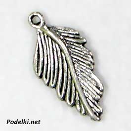 Подвеска Перо 0003853 серебряный цвет 30x15x4 мм