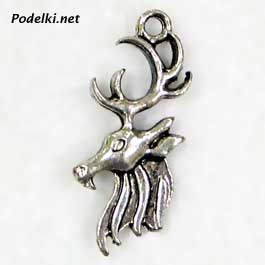 подвеска голова оленя 0003859 серебряный цвет 26x12x4 мм