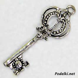 Подвеска Ключ античный 0003864 серебряный цвет 44x17 мм