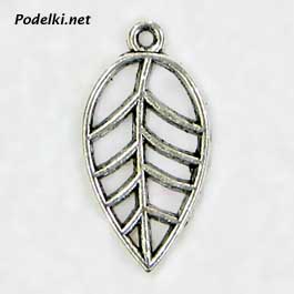 Подвеска Листик длинный прозрачный 0003873 серебряный цвет 23x12 мм