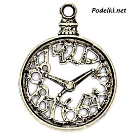 Подвеска Часы прозрачные 0003890 серебряный цвет 37x28 мм