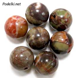 Натуральная бусина Яшма коричнево-зеленая 0003978 шарик 10 мм