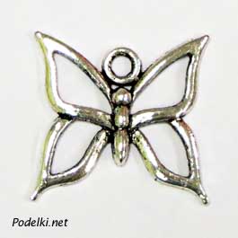 Подвеска Бабочка прозрачная 0004006 серебряный цвет 19x18 мм