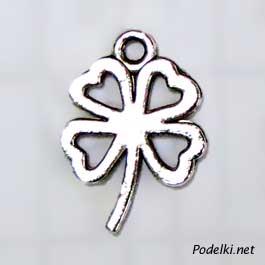 Подвеска Клевер прозрачный 0004009 серебряный цвет 19x13 мм