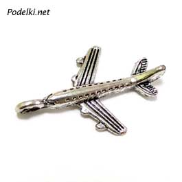 Подвеска Самолет с петлей на носу 0004056 серебряный цвет 24x15 мм
