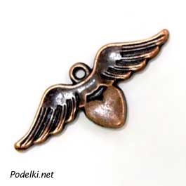 Подвеска Сердце с крыльями 0004059 медный цвет 35x14 мм