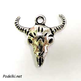 подвеска коровий черепок 0004063 серебряный цвет 20x20 мм