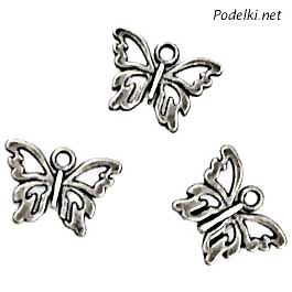 Подвеска Бабочка мини прозрачная 0004065 серебряный цвет 15x11 мм