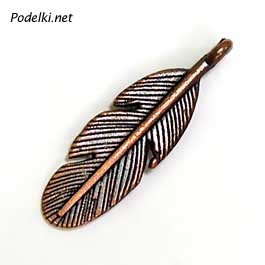 Подвеска Перо 0004096 медный цвет 29x9 мм