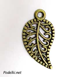 подвеска листик резной 0004098 бронзовый цвет 20x11 мм