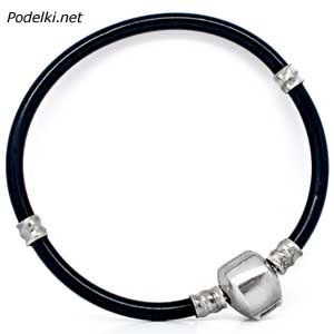 Браслет Пандора резиновый с застежкой-клипсой 0004125 черный цвет 18 см