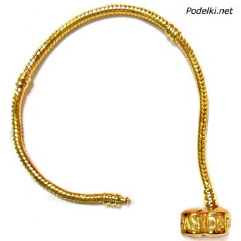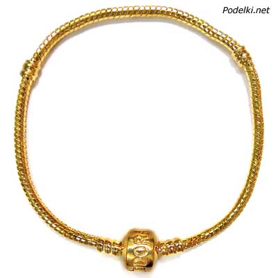 Браслет Пандора цепь змейка Pandora с застежкой-клипсой 0004127 золотой цвет 20 см