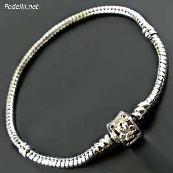Браслет Пандора цепь змейка с застежкой-клипсой узорной 0004138 серебряный цвет 20 см