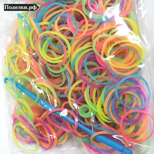 Упаковка разноцветных резиночек святищихся в темноте, крючок, закрепочки