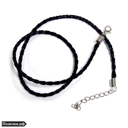 Плетеный шнур с замком кожзам 0004174 черный 3 мм