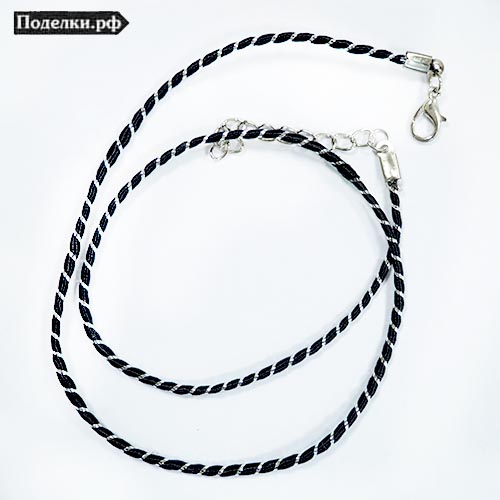Синтетический шнур с замком 0004182 черный с серебром 2 мм