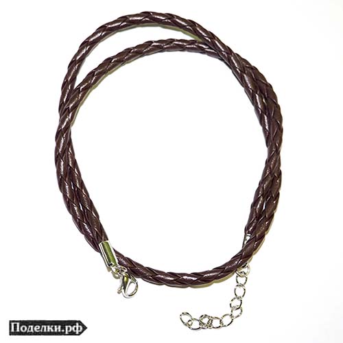 Плетеный шнур с замком кожзам 0004187 коричневый 4 мм