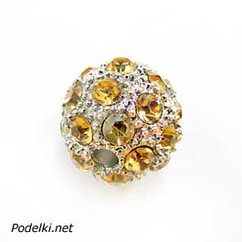 Металлическая бусина Шамбала 0004234 серебряный цвет с золотыми стразами 11 мм