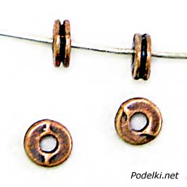 Металлическая бусина Шайбочка 0004266 медный цвет 6x2 мм