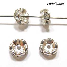 Рондель Изящный 0004293 серебряный цвет с прозрачными стразами 6x3 мм