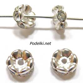 Рондель Изящный 0004294 серебряный цвет с прозрачными стразами 7x3 мм