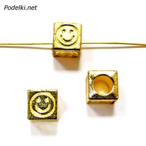 Металлическая бусина Пандора Кубик Рожица 0004298 золотой цвет 8x8 мм