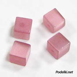Натуральная бусина под Кошачий глаз розовый 0004307 кубик 7x7 мм