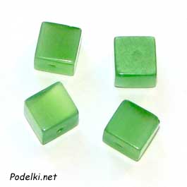 Натуральная бусина под Кошачий глаз зеленый 0004311 кубик 7x7 мм