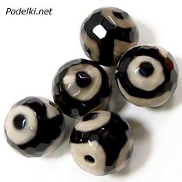 Натуральная бусина Дзи Агат глазастый черный 0004359 шарик граненый 12 мм