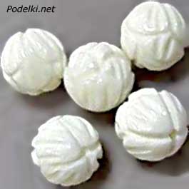 Натуральная бусина Коралл Зефир резной белый 0004362 шарик 12 мм