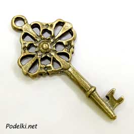 Подвеска Ключ резной 0004407 бронзовый цвет 38x19 мм