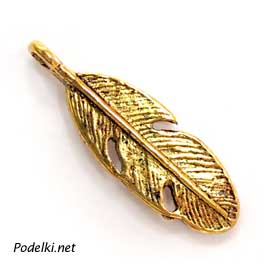 Подвеска Перо 0004417 золотой цвет 29x9 мм