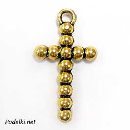Подвеска Крестик из шариков 0004423 золотой цвет 22x12 мм