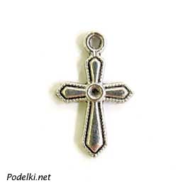 Подвеска Крестик мини ромбовидный 0004428 серебряный цвет 20x12 мм