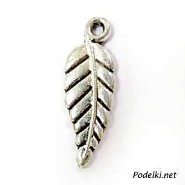 подвеска листик мини длинный 0004437 серебряный цвет 20x7 мм