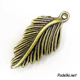 подвеска перо 0004468 бронзовый цвет 30x15x4 мм
