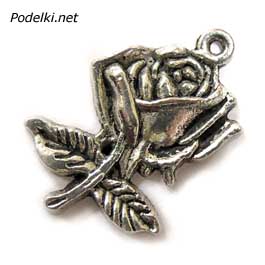 подвеска роза 0004473 серебряный цвет 25x17 мм
