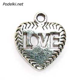 Подвеска Сердечко Love 0004476 серебряный цвет 21x19 мм