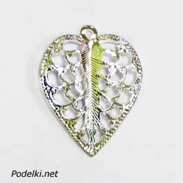 подвеска листик прозрачный 0004497 серебряный цвет 19x15 мм