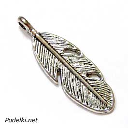подвеска перо 0004534 серебряный цвет 29x9 мм
