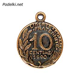 Подвеска Монета 0004570 медный цвет 23x19 мм