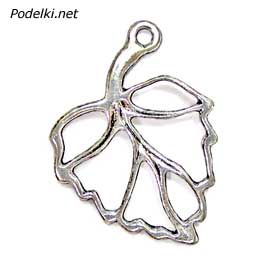 подвеска лист прозрачный 0004594 серебряный цвет 27x19 мм