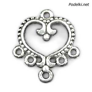 Коннектор Сердечко узорное 0004738 серебряный цвет 21x19 мм