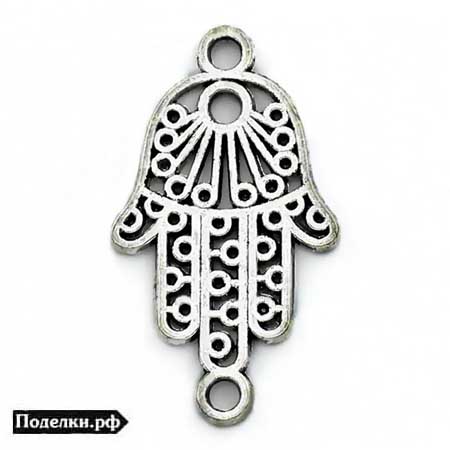 Коннектор Рука Фатимы прозрачная 0004768 серебряный цвет 27x15 мм