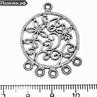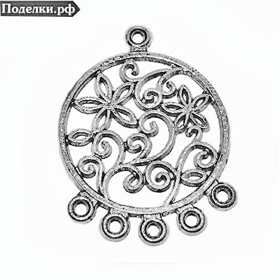 Коннектор Круг с цветами 0004769 серебряный цвет 36x27 мм