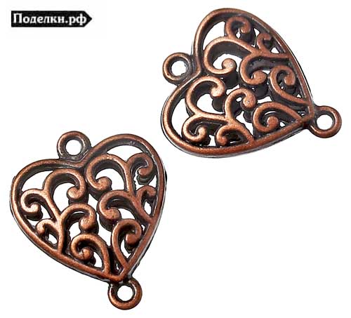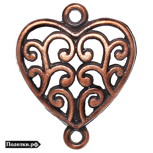 Коннектор Сердце объемное прозрачное 0004796 медный цвет 26x21x7 мм