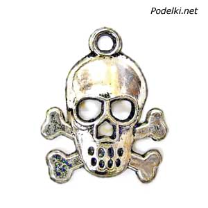 Подвеска Череп с костями 0004824 серебряный цвет 22x18 мм