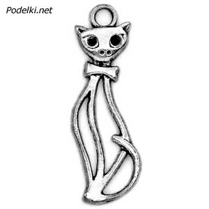 подвеска кошка прозрачная 0004857 серебряный цвет 34x13 мм