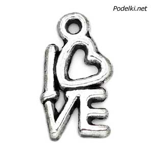 Подвеска Love с сердечком 0004866 серебряный цвет 14x8 мм