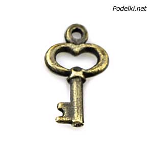 Подвеска Ключик мини Сердечко 0004882 бронзовый цвет 16x9 мм